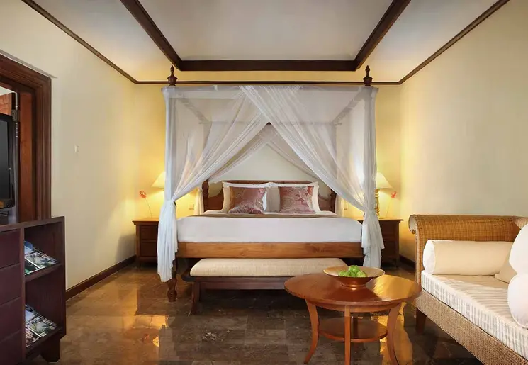 Het Puri Santrian is een fijn hotel. Het is groots opgezet met groen aangelegde tuinen en direct aan een breed zandstrand. Er zijn twee zwembaden. Voor Santrian Club gasten is er ook nog een apart zwembad. De variatie aan kamertypes is groot.