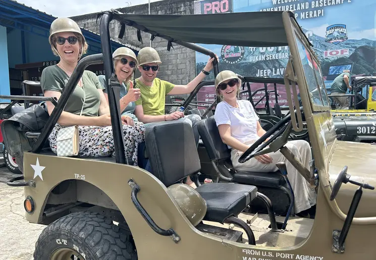 Je rijdt richting de hofstad Jogyakarta. Je kunt kiezen voor de snelle route, maar zelf vinden we de landelijke route mooier. Je kunt kiezen voor de snelle route, maar de landelijke route is mooier. Je stopt onderweg dan bij enkele tempels, rijdt over smalle wegen en ziet de Merapi-vulkaan. Met een jeep kun je de helling van de Merapi op. Je ziet onder andere de gestolde lava die van de helling afstroomde. De jeeptour kun je ter plaatse betalen.