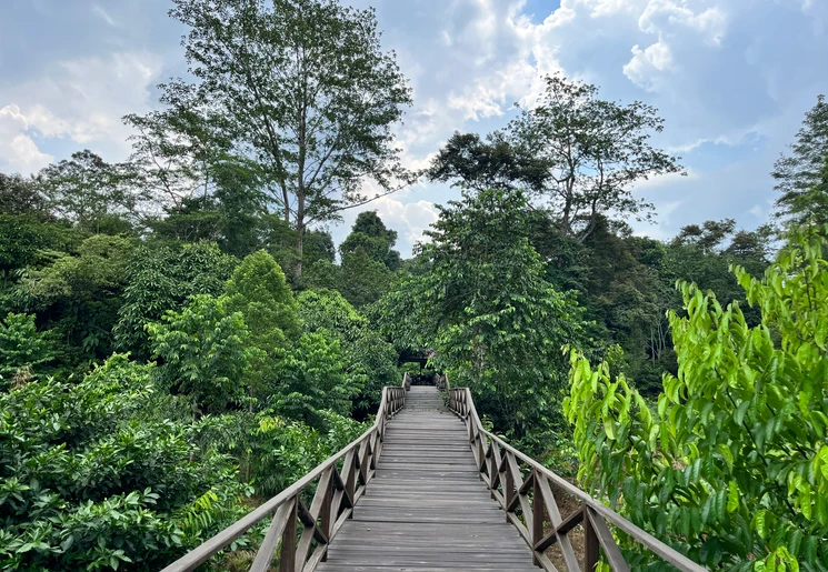 Je wordt opgehaald bij je hotel in Samarinda voor de rit van ongeveer 8 uur naar Sangatta. Deels langs mijnen en plantages, deels door een mooier bosachtig gebied, afgewisseld met dorpen. Net voor Bontang passeer je de evenaar; er is een monument. En dan arriveer je in de rust van het nationale park.