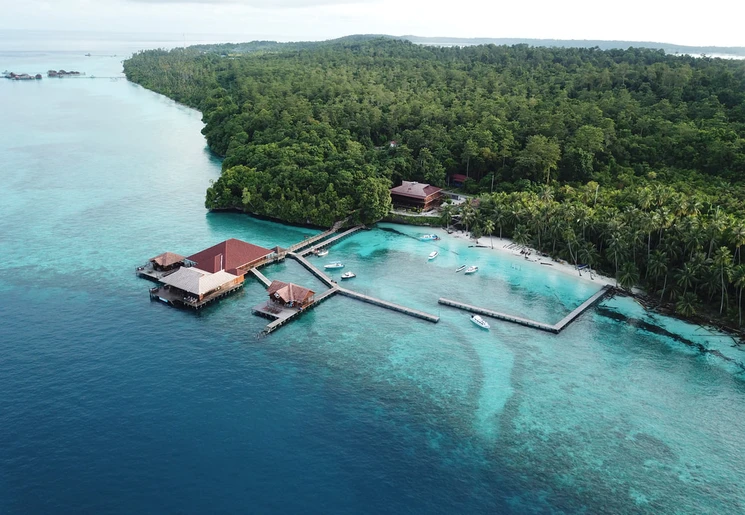 Net buiten het dorpje op het eiland ligt aan de zee het Derawan Dive Lodge. Je loopt binnen een paar minuten naar lokale restaurantjes en winkeltjes. De kamers liggen aan zee en ook zijn er watervilla’s beschikbaar. Snorkelen en duiken kan in de omgeving.