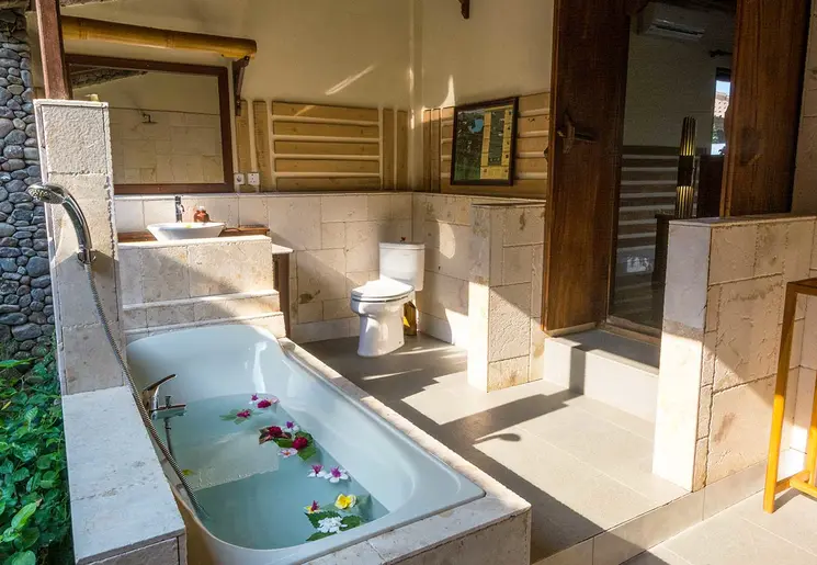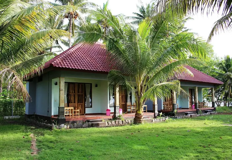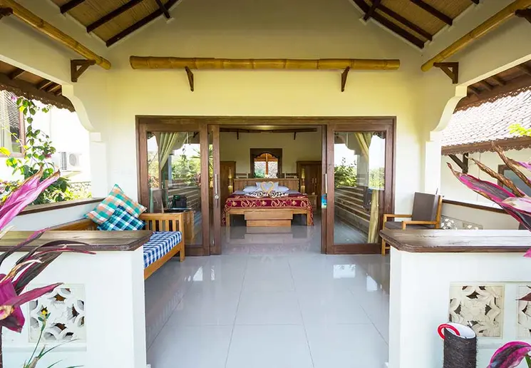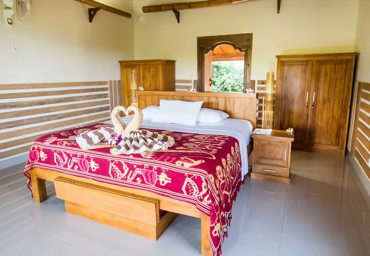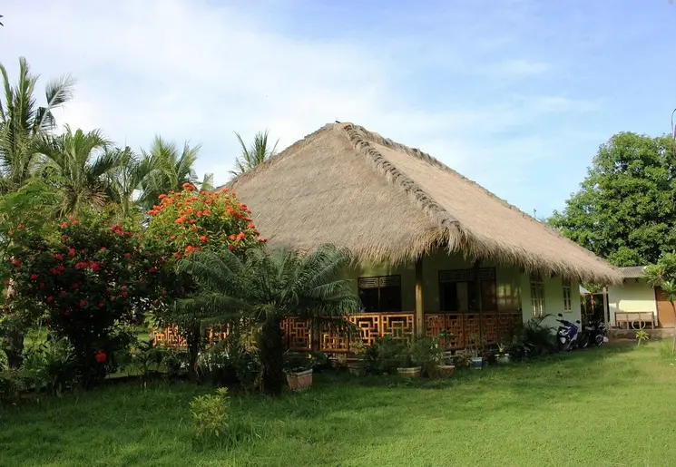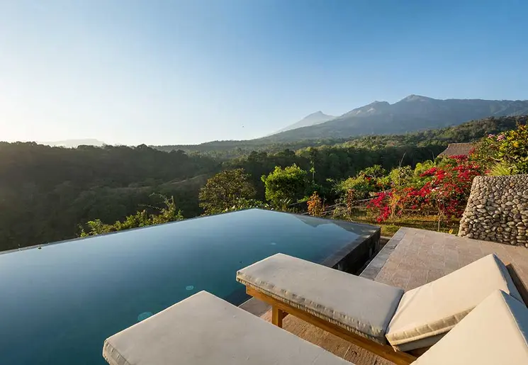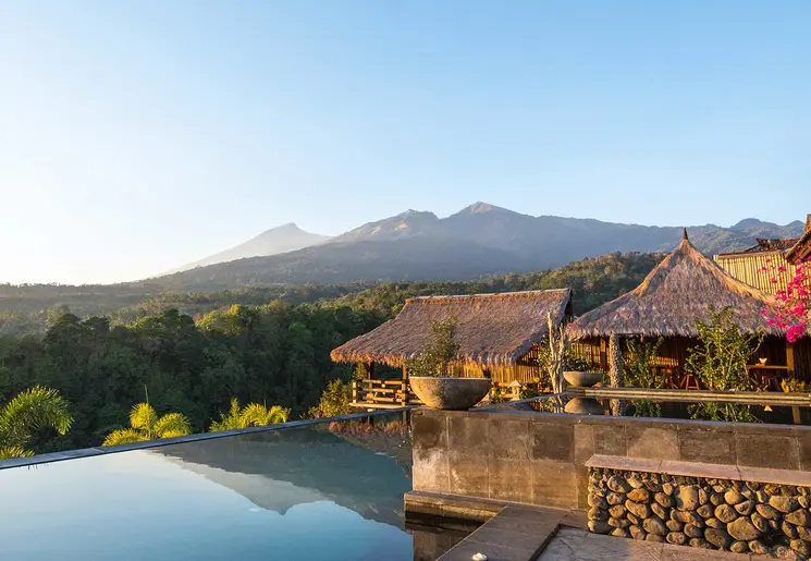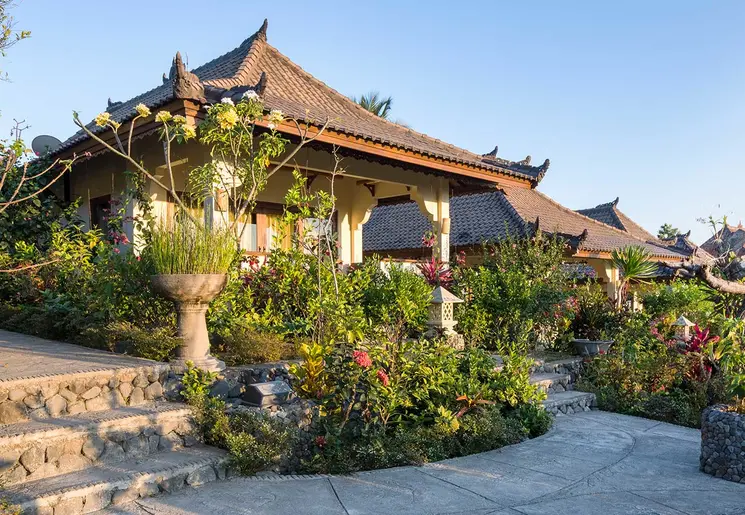 Fraai boutique hotel, gelegen aan de rand van het Rinjani National Park, met prachtige uitzichten op Mount Rinjani. Om je heen bomen, groen en natuur. De tuin is gevuld met kleurrijke bloemen.