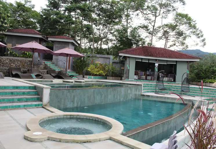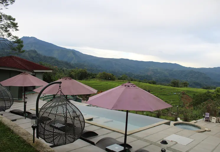 Wat een plaatje! Midden in de rijstvelden en de bossen van Malino ligt het kleinschalige Rumah Tengah Sawah. Vanuit het zwembad, de jacuzzi en de kamers kijk je uit over het indrukwekkende landschap.