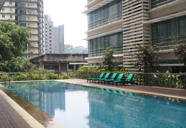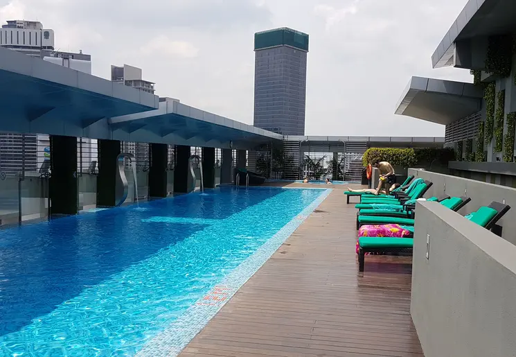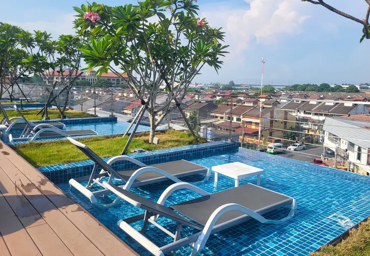Beleef het oude Melaka in een nieuw jasje. Dit is de quote van het hotel en zegt alles. Erg sfeervol en nieuw van binnen maar oud in de Maleise stijl. Een hotel met zonnebedjes in het water ter verkoeling.