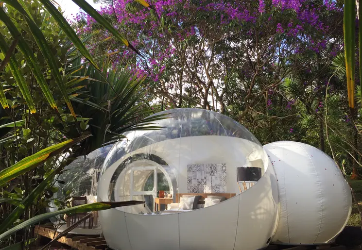 Verblijf in een transparante bubbel midden in de natuur en wordt wakker met uitzicht op het rustige meer en het gezang van vogels. Overnacht in het hart van Mauritius, zonder buren of drukte, en ervaar de rust en stilte van het eiland. Droom weg onder een heldere sterrenhemel.