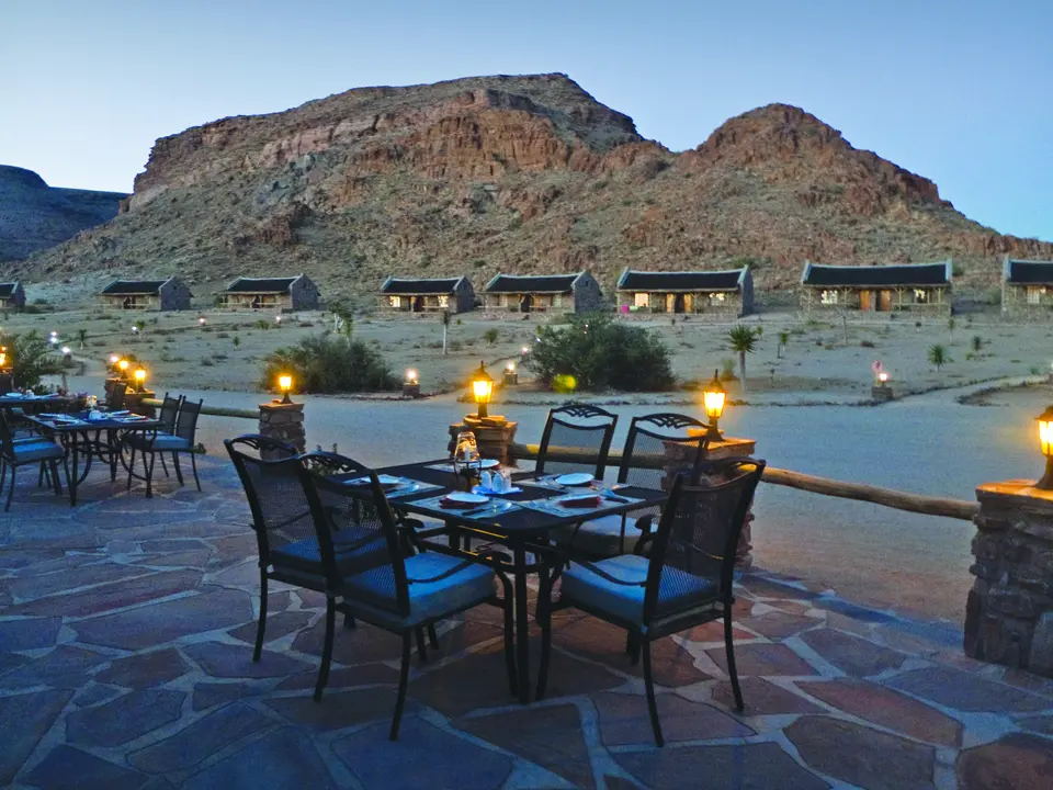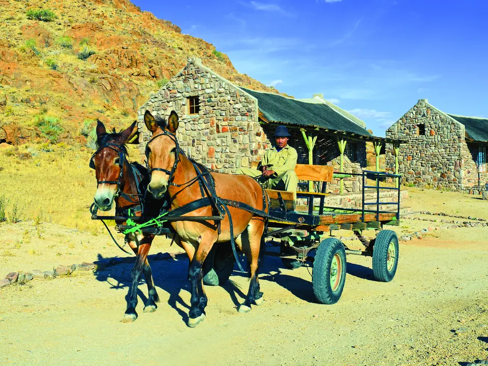 Canyon Village is in harmonie met de omgeving gebouwd en ligt op een fenomenale plek dichtbij Fish River Canyon. Het achtergronddecor van machtige rotsformaties geven het gevoel op een filmset te zijn aanbeland. Altijd al een hoofdrol willen spelen?.. hier ligt je kans! Kokerbomen, het vriendelijke Nama-personeel en het ruige landschap sluiten naadloos aan bij de gebied, dit maakt je verblijf extra bijzonder. Om in stijl te blijven wordt bagage door ezels naar je kamer gebracht.