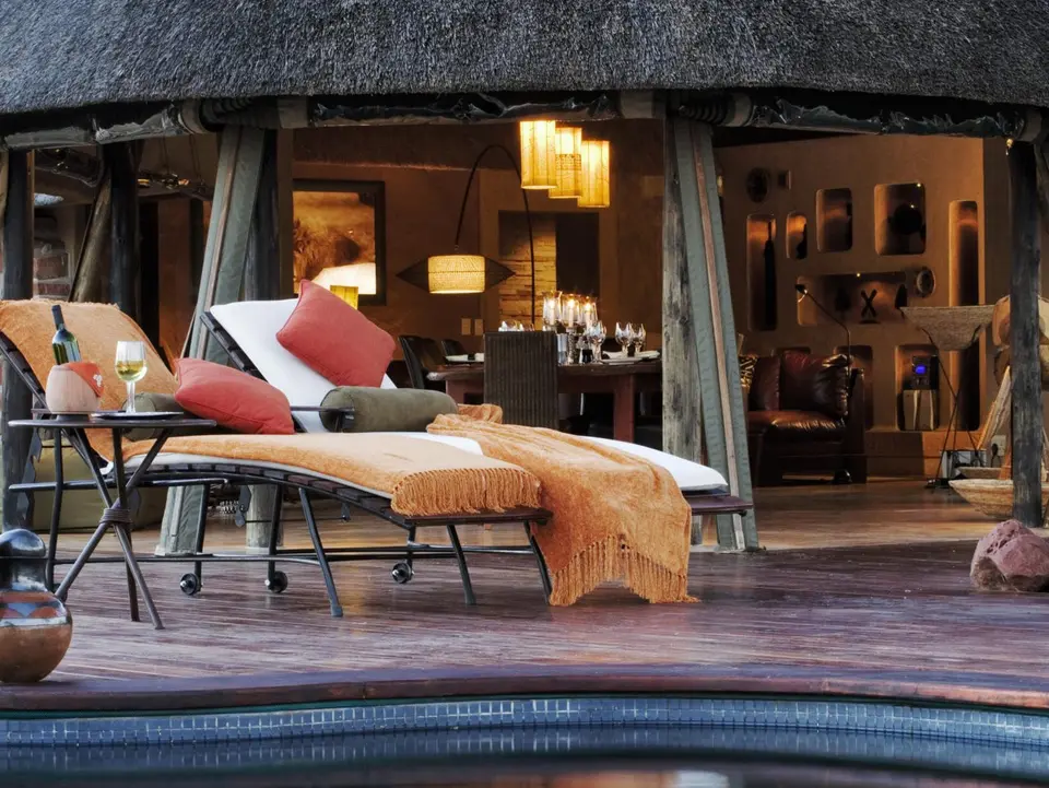 Het centrale deel is in typisch Afrikaanse stijl gebouwd en ingericht. De ruime lapa is met riet overkapt en heeft diverse zitgedeeltes waar op de frisse winteravonden het haardvuur knappert. In het eetgedeelte staat ’s morgens een ontbijt klaar met veel verse producten. Dit is tevens de plek waar smakelijke lunches en diners worden geserveerd. Zak weg in een van de stoelen en observeer met je verrekijker de dieren die een slokje water komen halen bij de drinkplaats. Wordt het je te warm, zoek dan verkoeling in het zwembad. Na zonsondergang wordt het kampvuur aangestoken, zodat je met je medegasten de dag nog eens kunt doornemen al dan niet onder het genot van een lekker drankje. Speciaal voor gasten van Luxury Bush Camp is er gelegenheid om na het diner vanuit de nachtobservatiepost stekelvarkens en honingdassen te spotten, hoe bijzonder is dat!