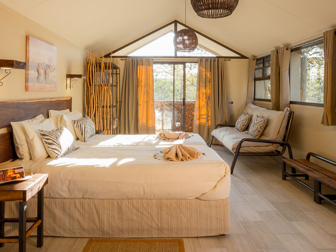 De ligging in het Onguma Private Game Reserve maakt Forest Camp een ideale plek om te verblijven. Kleinschalig én met een drinkwaterplaats voor de deur; dus wild spotten vanuit je luie stoel. Maak in het reservaat safaritochten in open voertuig of, nog spannender, neem plaats in de observatiepost en geniet van het komen en gaan van dieren.