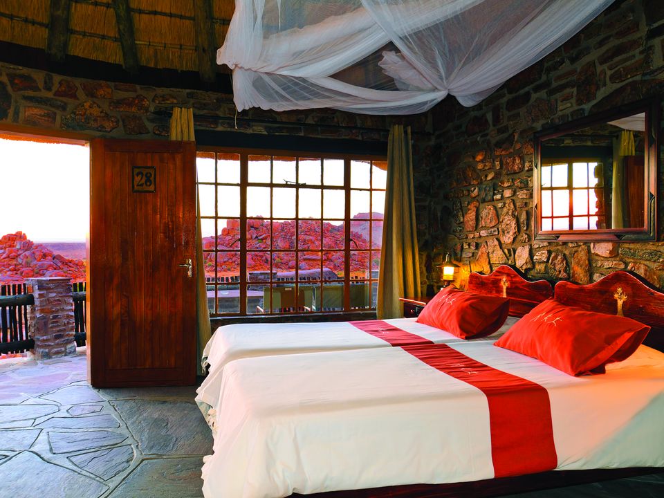 Hoe gaaf is het om te wandelen tussen de wilde dieren in het Daan Viljoen Game Reserve. Dit is het enige park in Namibië dat je lopend mag verkennen. Vind je dat toch iets te spannend? Met de auto kun je uiteraard ook het park in. ‘s Avonds kun je kiezen om de barbecue bij je kamer aan te steken of een maaltijd te gebruiken bij het restaurant met uitzicht op het zwembad.