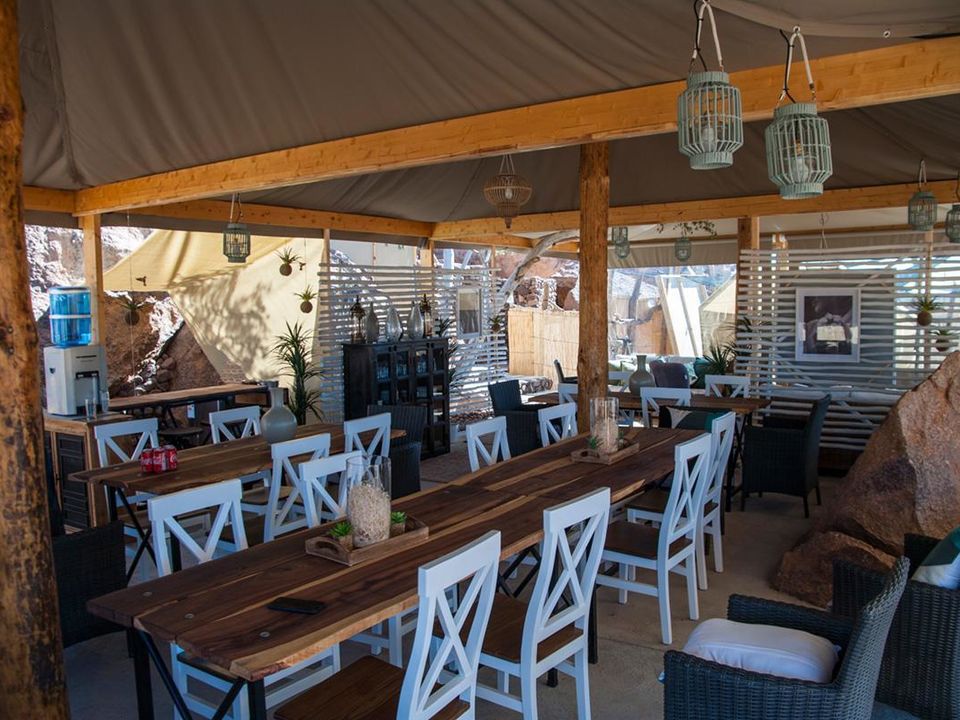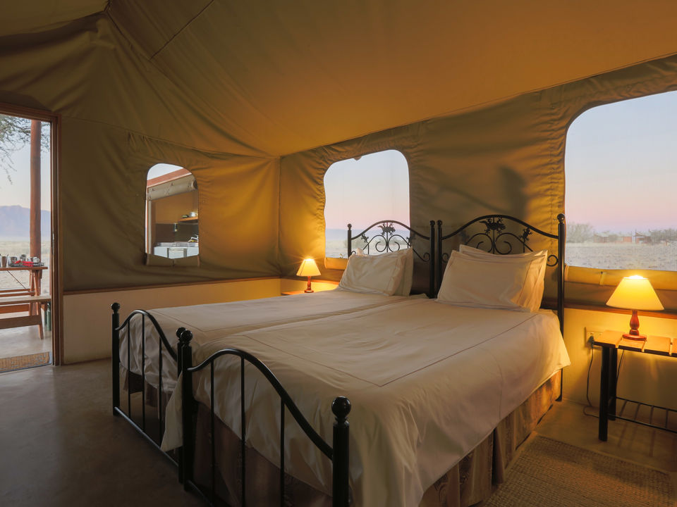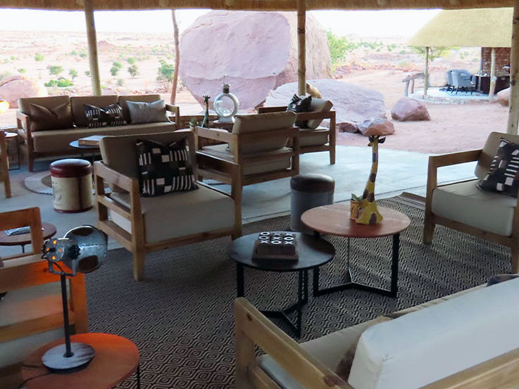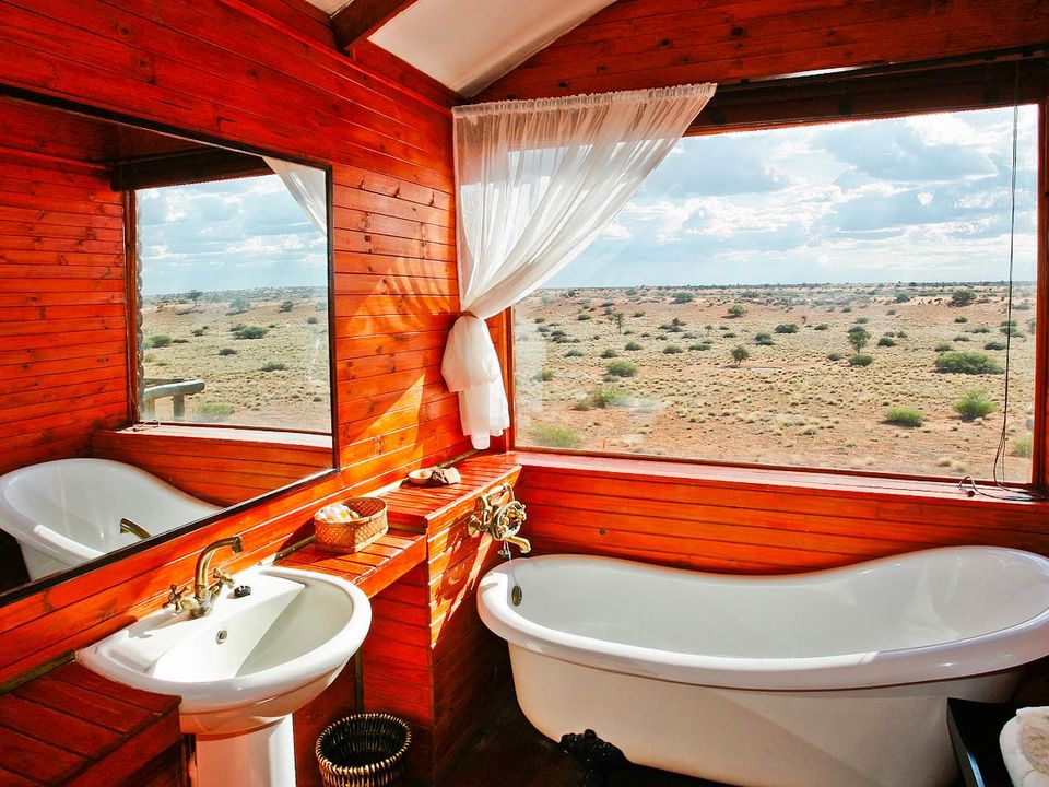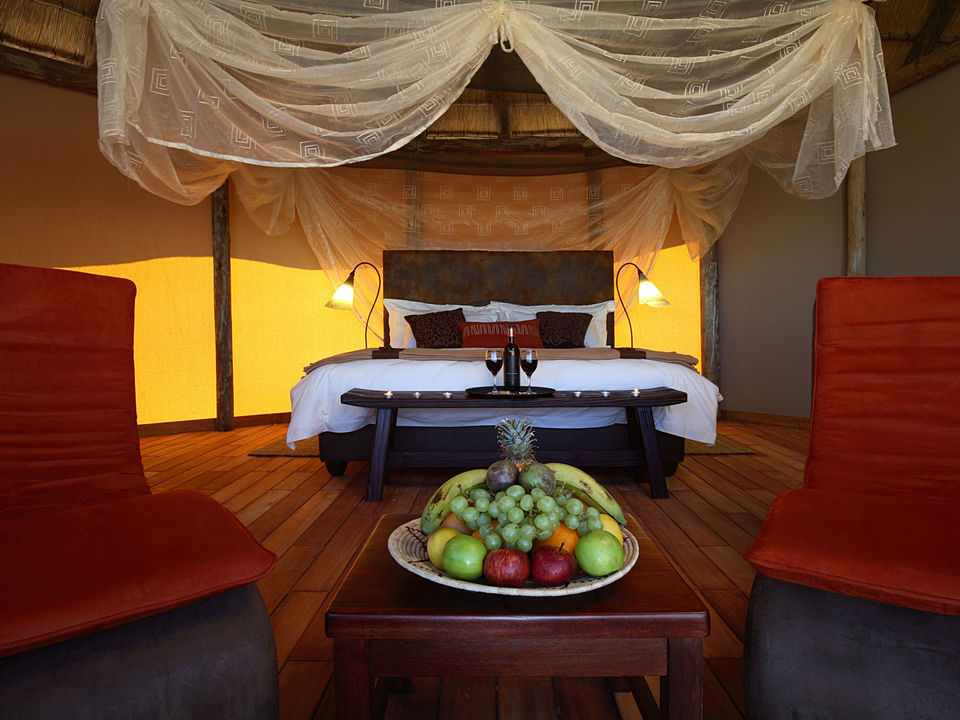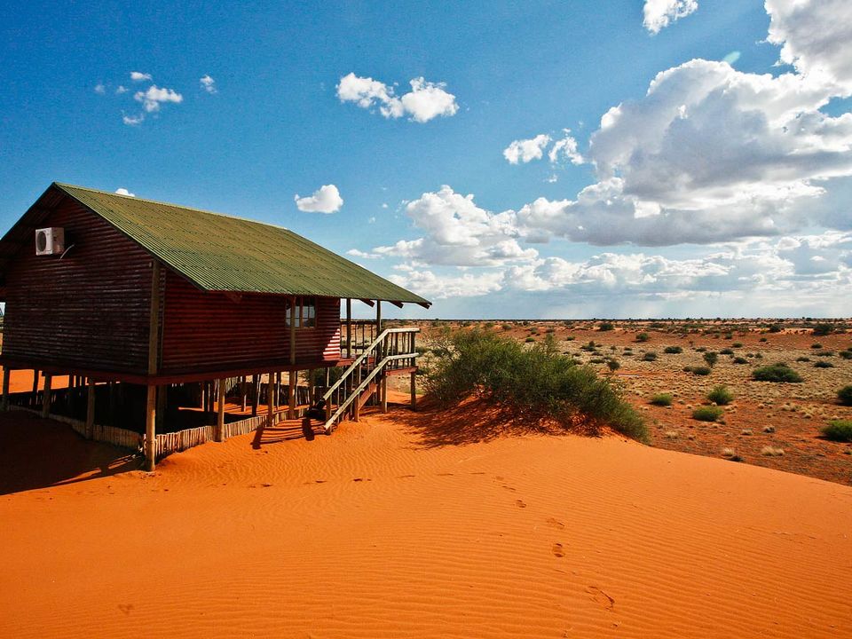 Camelthorn Kalahari Lodge is volop omringd door endemische kameeldoornbomen. Een passende naam voor een lodge op deze sfeervolle plek tussen twee rode zandduinen, vind je ook niet? Het hoofdgebouw met zijn rieten dakbedekking herbergt de receptie, het restaurant, de bar en lounge met luie lederen fauteuils. Gerechten in het restaurant worden bereid met verse groentes van een nabijgelegen boerderij. Buiten in de boma, kun je ’s avonds onder maan en sterren bij fakkelvuur van je diner genieten. Je vult je dagen met safari’s per landrover of te voet in het wildreservaat. Tussendoor kun je verkoeling zoeken in het zwembad. Camelthorn Kalahari Lodge heeft twee zusjes in hetzelfde wildreservaat (Zebra Kalahari Lodge en Suricate Tented Camp).
