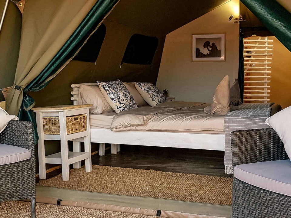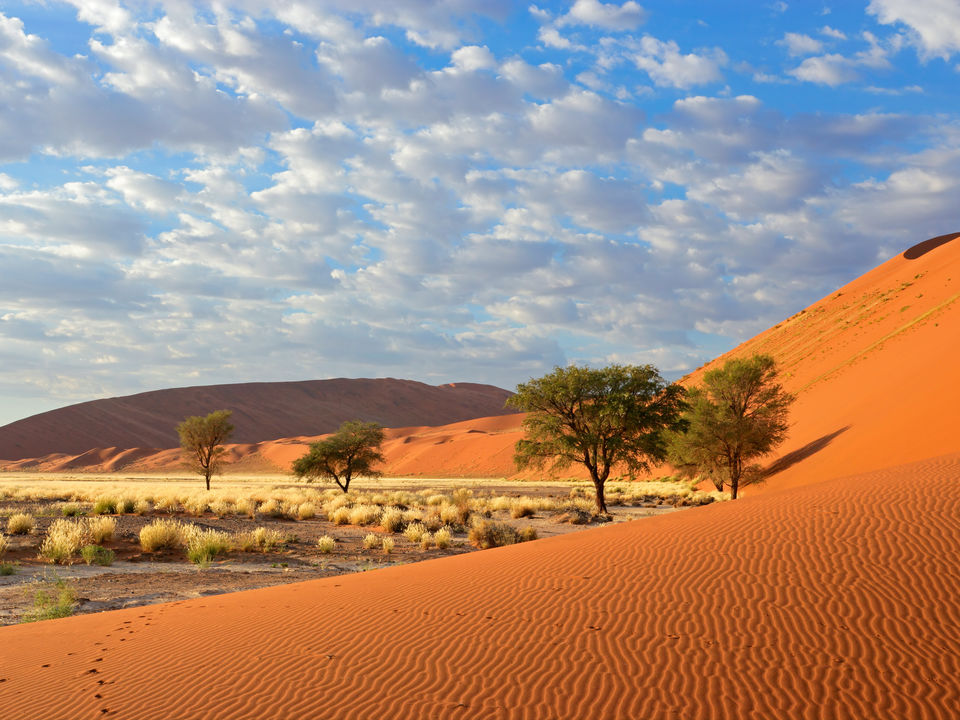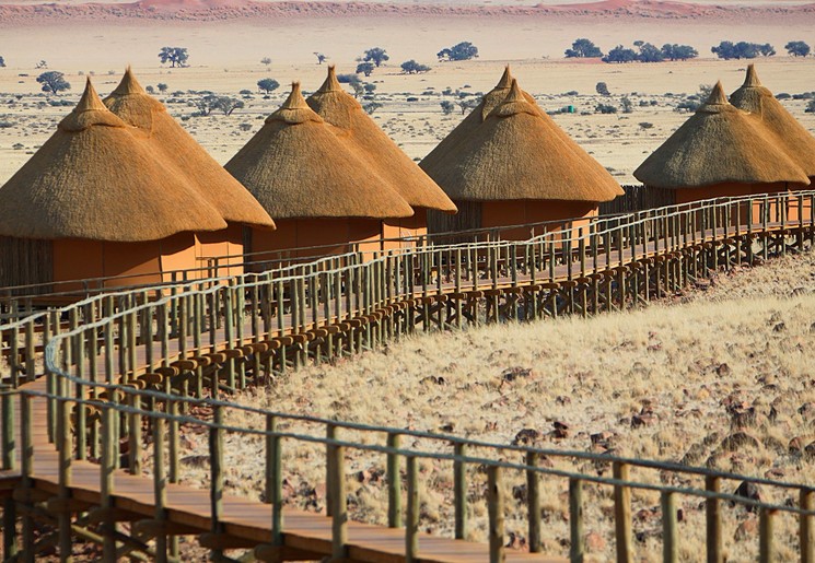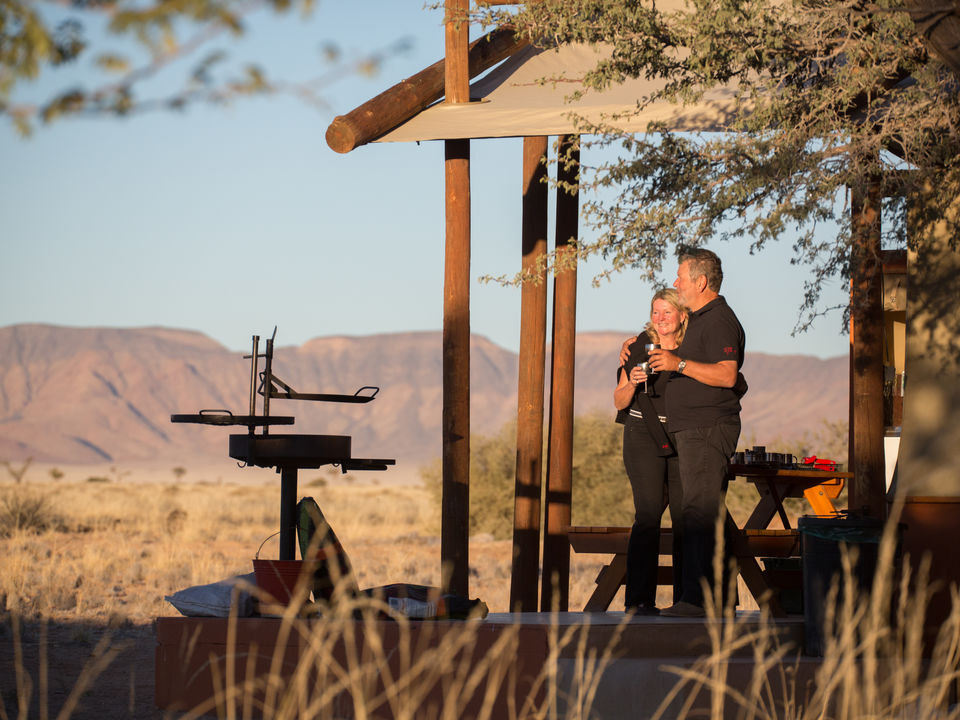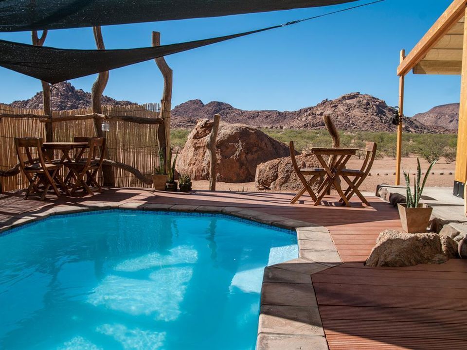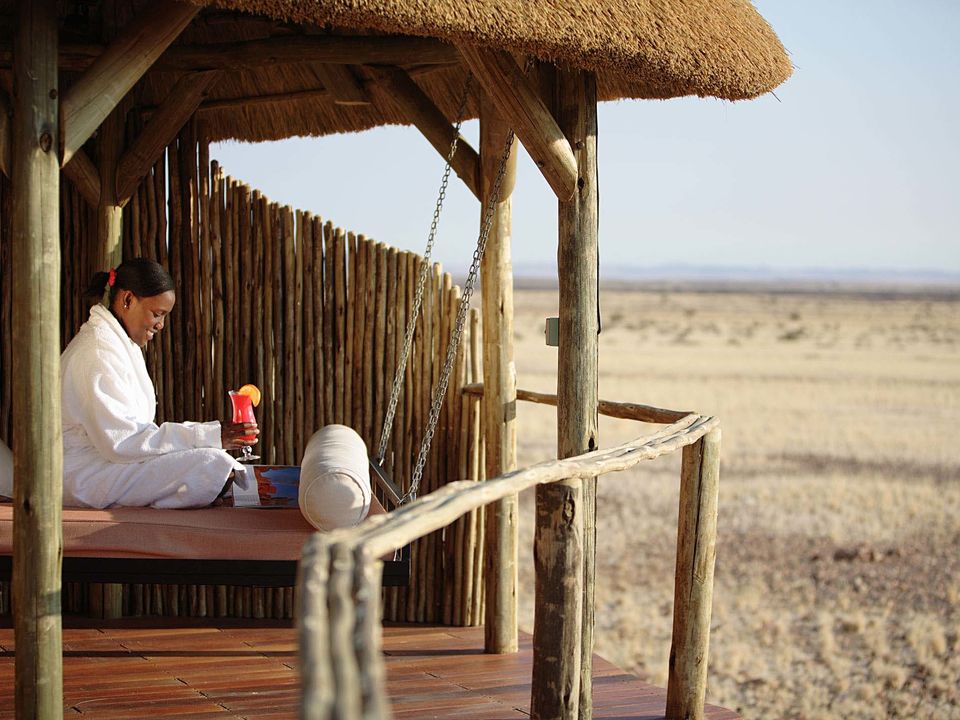 Camelthorn Kalahari Lodge is volop omringd door endemische kameeldoornbomen. Een passende naam voor een lodge op deze sfeervolle plek tussen twee rode zandduinen, vind je ook niet? Het hoofdgebouw met zijn rieten dakbedekking herbergt de receptie, het restaurant, de bar en lounge met luie lederen fauteuils. Gerechten in het restaurant worden bereid met verse groentes van een nabijgelegen boerderij. Buiten in de boma, kun je ’s avonds onder maan en sterren bij fakkelvuur van je diner genieten. Je vult je dagen met safari’s per landrover of te voet in het wildreservaat. Tussendoor kun je verkoeling zoeken in het zwembad. Camelthorn Kalahari Lodge heeft twee zusjes in hetzelfde wildreservaat (Zebra Kalahari Lodge en Suricate Tented Camp).