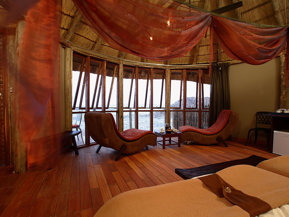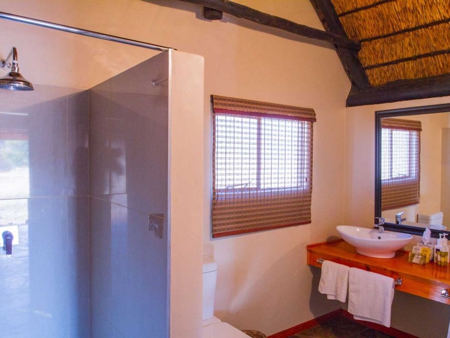12 knusse, lemen huisjes met een rieten dak, ver van elkaar verspreid rondom het hoofdgebouw. Binnen tref je een tweepersoonsbed of twee aparte bedden en een redelijk grote badkamer met douche en toilet. Vanwege het hoge plafond lijkt de kamer extra groot.