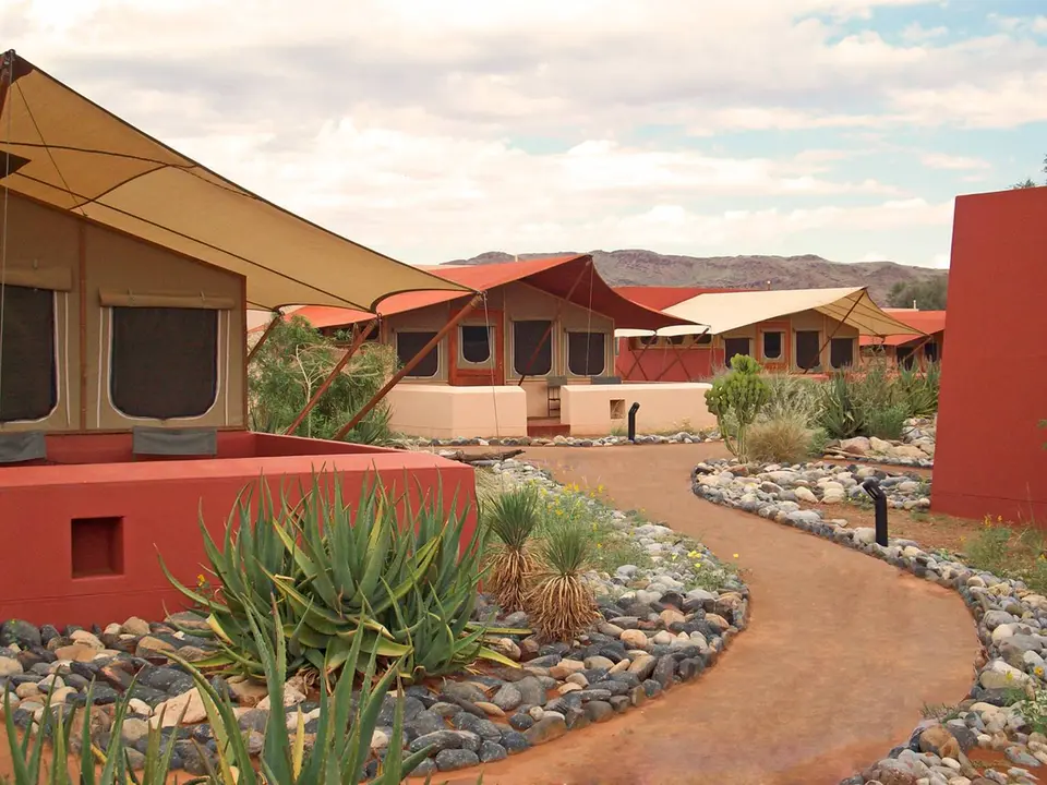 - Units: de 45 chalets zijn ruim ingericht met 2 aparte bedden en een zitje. De bouw is geheel in harmonie met de omgeving. De badkamer is voorzien van een douche en toilet. Airconditioning, koffie- en theefaciliteiten en een kluis zijn aanwezig. De patio voor de unit is een fantastische plek met uitzicht op de woestijn en de zandduinen, heerlijk om met dit uitzicht wakker te worden.