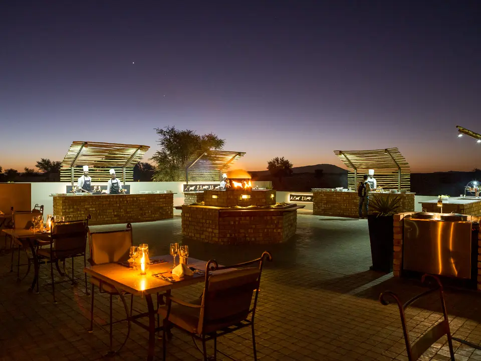 Sossusvlei Lodge biedt vele mogelijkheden en er hangt een aangename sfeer. De waterdrinkplaats voor de lodge is een eldorado voor oryxen, springbokken en hyena’s die hier hun dorst komen lessen. Zorg voor een verrekijker bij de hand! Bij mooi weer eet je de buffetmaaltijden op het buitenterras. ’s Avonds is het hier sfeervol verlicht. Een koud biertje staat klaar bij de bar, terwijl het zwembad uitkomst biedt op de warme momenten van de dag. De smaakvol ingerichte lounge is op frisse winteravonden een gezellige plek om in contact te komen met andere gasten. Er is gratis wifi aanwezig in het hoofdgebouw. Bij het Adventure Centre zijn veel excursies te reserveren. Maak een onvergetelijke quadtour, bezoek samen met een gids de zandduinen en Deadvlei, laat je verrassen met een ontbijt en/of diner midden in de natuur of geniet vanuit een heteluchtballon van de serene rust en het geweldige uitzicht.