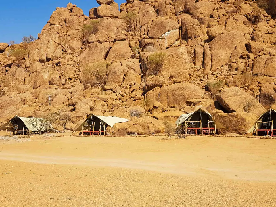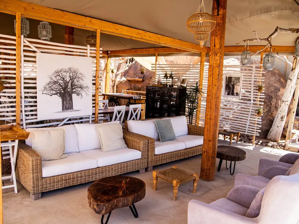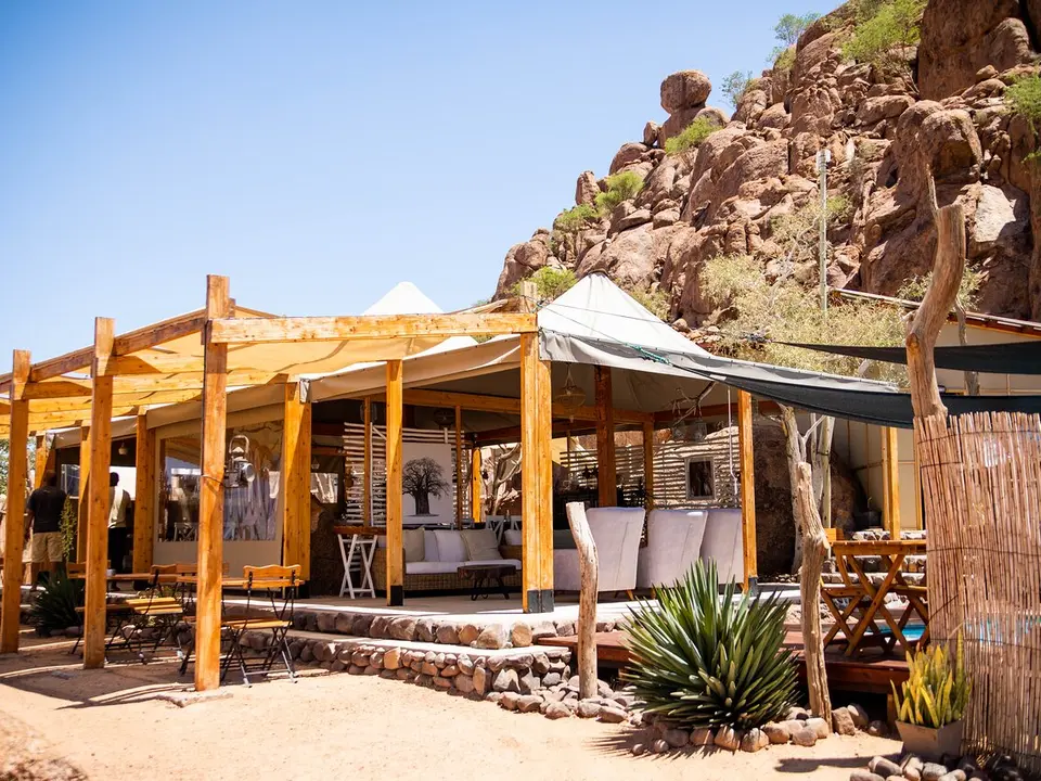 Geheel in harmonie met de omgeving zijn de safaritenten gebouwd. Rondom het zwembad is het goed toeven. Het uitkijkdek is ook een fijne plek om neer te strijken, vergeet je verrekijker dan niet. In het open restaurant met bar wordt op de koude avonden de open haard aangestoken. Het kamp werkt op zonne-energie.