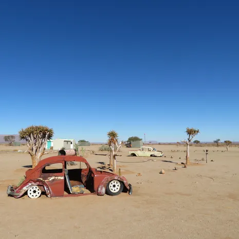 Tussen de stiltes van de Sossusvlei, Sesriem Canyon en het Namib-Naukluft National Park staat een benzinestation met een postkantoor, winkel en restaurantje erbij. Welkom in Solitaire.