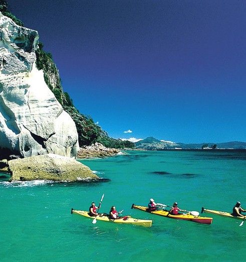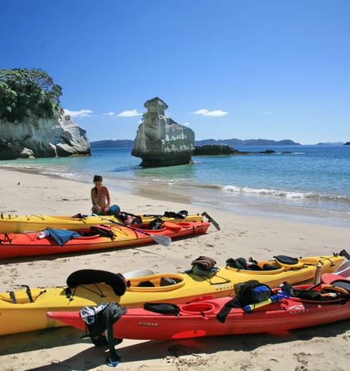 Misschien wel de leukste manier om de kust voor het schiereiland Coromandel te verkennen: per kajak! Peddel door zeegrotten en geniet van het uitzicht over de kust met witte stranden, ruige rotsen en groene bossen. Wie weet spot je wel vogels of zelfs dolfijnen. Uiteraard mag een stop bij Cathedral Cove niet ontbreken. Ga aan land en bewonder het natuurwonder onder genot van koffie, thee, chocomelk en een koekje.