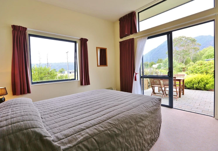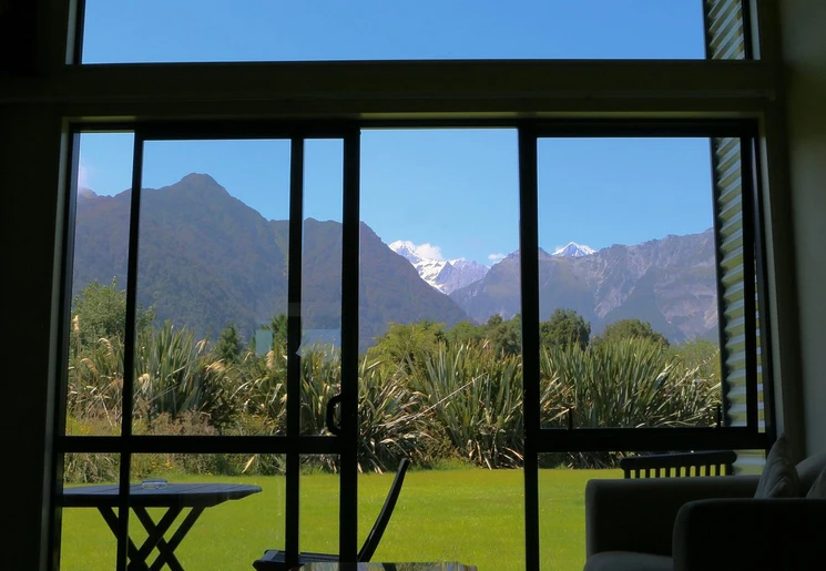 Door de grote ramen van de kamers blijf je naar buiten staren. Als je hier je dag begint, in het zonnetje, met een geweldig uitzicht, dan kan de dag niet meer stuk! Dit is een ideaal startpunt om Fox Glacier te bezoeken, als je een comforrtabel hotel tegen een gunstige prijs zoekt.