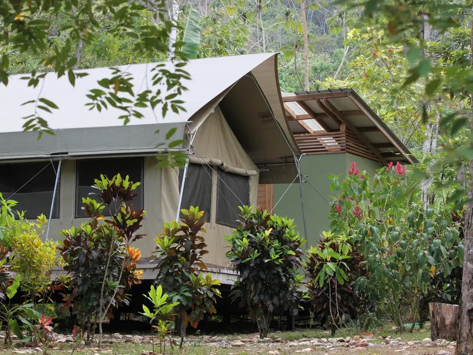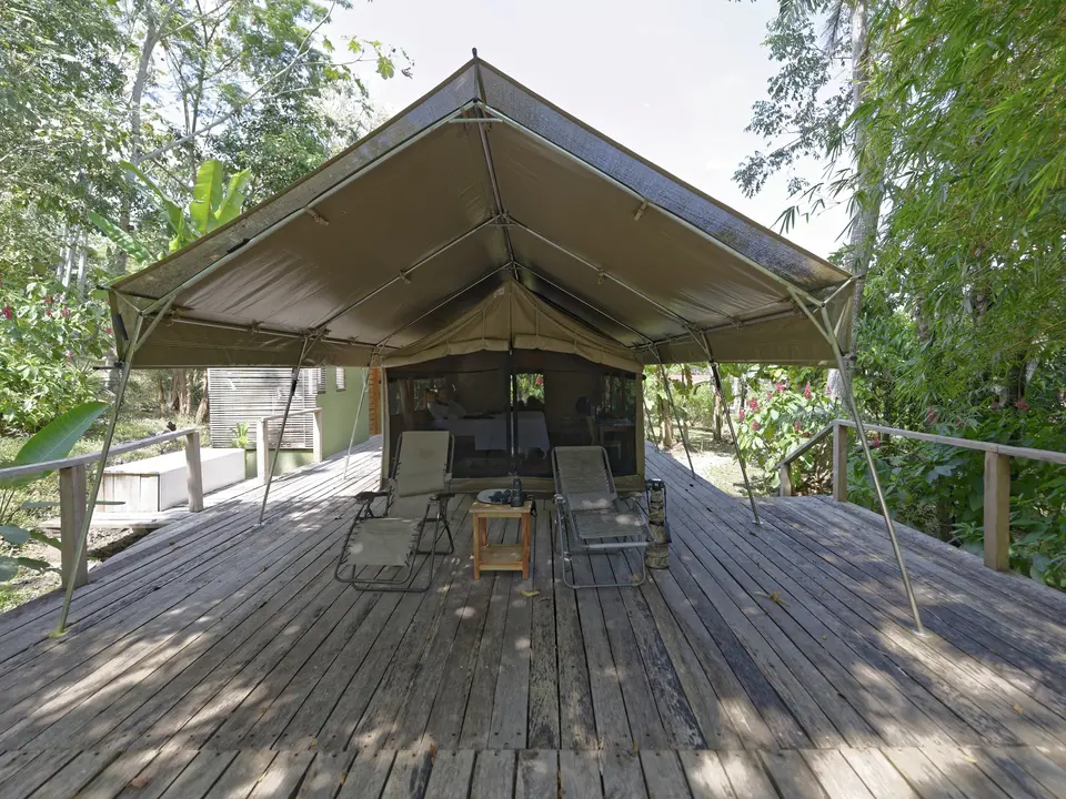 In totaal zijn er slechts acht tenten: exclusiviteit is gewaarborgd! De tenten in Afrikaanse safari-stijl staan op een houten platform in de jungle. Je hebt veel privacy. En vanuit je tent kijk je uit op de jungle.