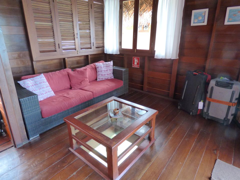 Er zijn zeven hutten (oftewel standaard bungalows) op het water en drie kamers in een klein gebouw. De bungalows op het water zijn aan te raden. Alle bieden veel privacy. In de hutten is een zitgedeelte met een bank en onder de salontafel zit een gat in de vloer. Er staat vissenvoer en als je dat door het gat werpt, zie je vele vissen verschijnen, zo onder je bungalow. Er is een terras met twee ligstoelen en een hangmat. Vanaf het terras gaat een trapje de zee in. In de slaapkamer is een tweepersoonsbed. Er ligt snorkelmateriaal in de kamer. In de badkamer is een douche met warm water. Omdat er zonne-energie is en men zo veel mogelijk ecologisch wil zijn, word je verzocht geen föhn te gebruiken. De bungalows hebben een ventilator boven het bed, een kluisje en een muziekinstallatie.