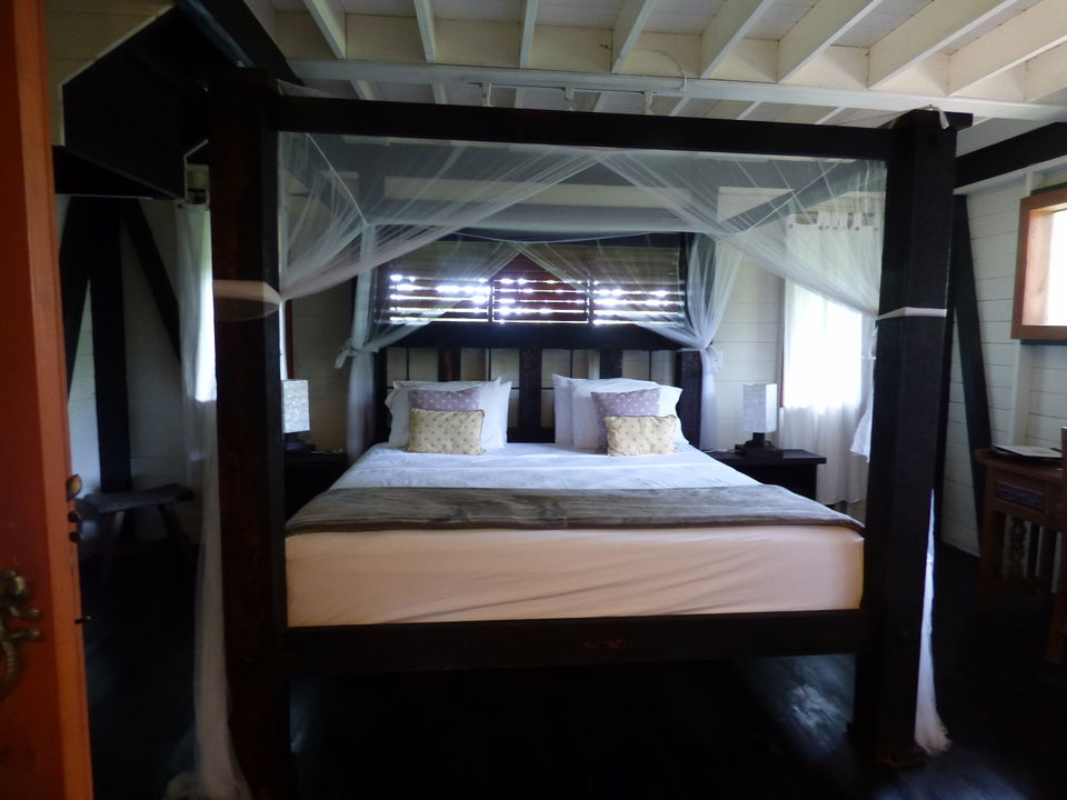 Het hotel heeft een mooie mix van verschillende stijlen. De algemene ruimtes zijn door de Noorse eigenaar ingericht met Balinese meubels. De kamers zijn ingericht met houten meubels uit Panama. Er zijn tien kamers in totaal. Eén in het hoofdgebouw op de eerste etage, twee in huizen in de tuin en de rest van de kamers is in een L-vorm bij het zwembad gebouwd. In de kamers is een ventilator en een kluisje. Zowel voor als achter de kamers bij het zwembad heb je een terras met twee stoelen. De achterkant van de kamers is bijna helemaal open, alleen afgescheiden met muskietengaas. De jungle begint daar, niemand kan naar binnen kijken. Er staat een kan met drinkwater in de kamer; men probeert het gebruik van plastic flessen te reduceren. De badkamer heeft een buitendouche. ’s Morgens en ’s middags is er warm water; ’s avonds niet. Het hotel heeft geen aansluiting voor water en elektra; maar regelt alles zelf. Op de kamer liggen badlakens die je mee kunt nemen naar het strand.