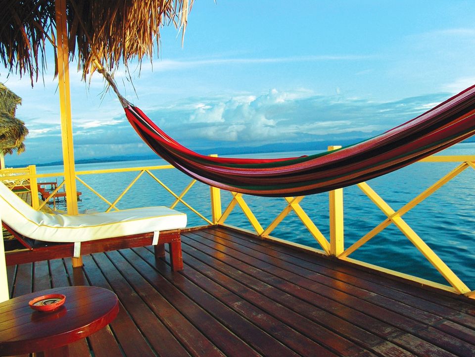 Ongeveer 30 minuten per auto vanaf Bocas Town ligt het vier kilometer lange witte zandstrand van Bluff Beach. Aan de ene kant wordt het hotel alleen door een zandweg gescheiden van het strand. Aan de andere kant is de jungle. ’s Morgens word je wakker met het gelui van brulapen en krekels. Er zijn niet veel restaurants in de buurt en geen winkels. Een taxi naar de “hoofdstad” Bocas Town kan geregeld worden. Vlak bij het hotel ligt de Bom Bom Beach Bar. Hier is het goed toeven als je een middag aan het strand wilt liggen en als je ’s avonds een cocktail wilt drinken. In het seizoen dat de zeeschildpadden hun eieren komen leggen, is de bar trouwens ’s avonds gesloten.