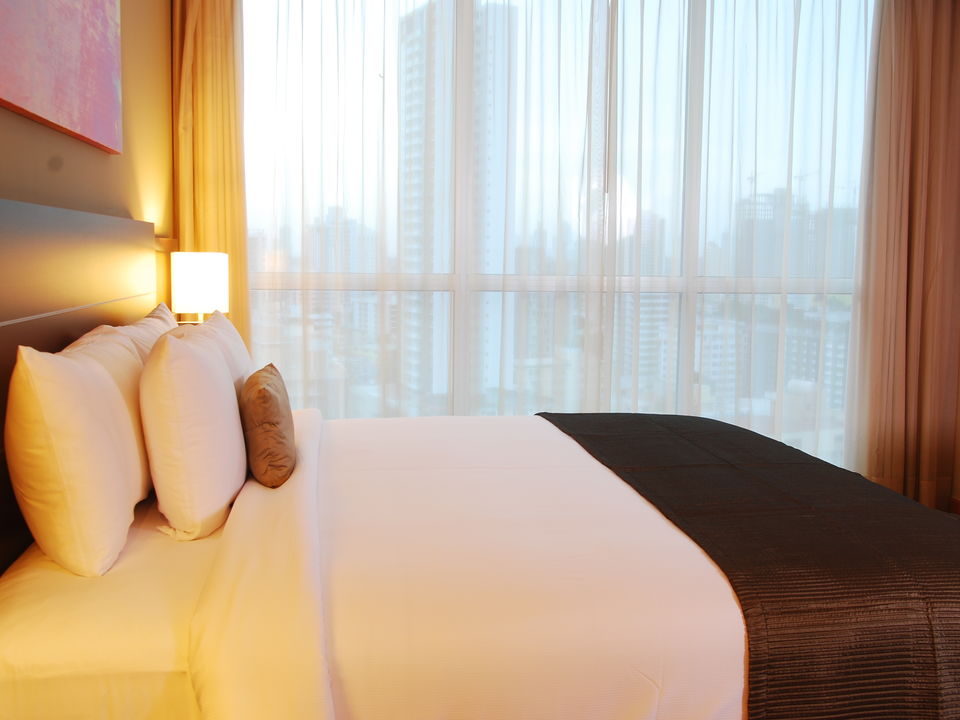 In het nieuwe, moderne deel van Panama City. De wijk heet El Cangrejo. Er is veel hoogbouw hier. Kantoren, woningen, winkels en hotels wisselen elkaar hier af. Er zijn restaurants en winkels op loopafstand. Tegenover het hotel is bijvoorbeeld een Italiaans restaurant. Naar het oude centrum of één van de luchthavens ga je het makkelijkst met een auto. De luchthaven is ongeveer een half uur rijden, het oude centrum ligt een kwartier rijden de andere kant op.