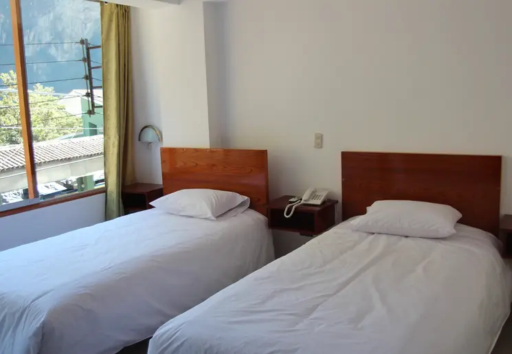 Je reist zonder koffer naar Aguas Calientes. Je grote bagage laat je achter in Cuzco. Bij aankomst van de trein wacht de vertegenwoordiger van het hotel met een naambord van het hotel. Samen met de vertegenwoordiger van het hotel loop je het kleine stukje naar de accommodatie toe. Je draagt je eigen bagage.