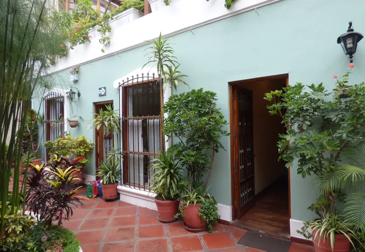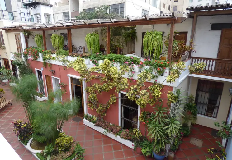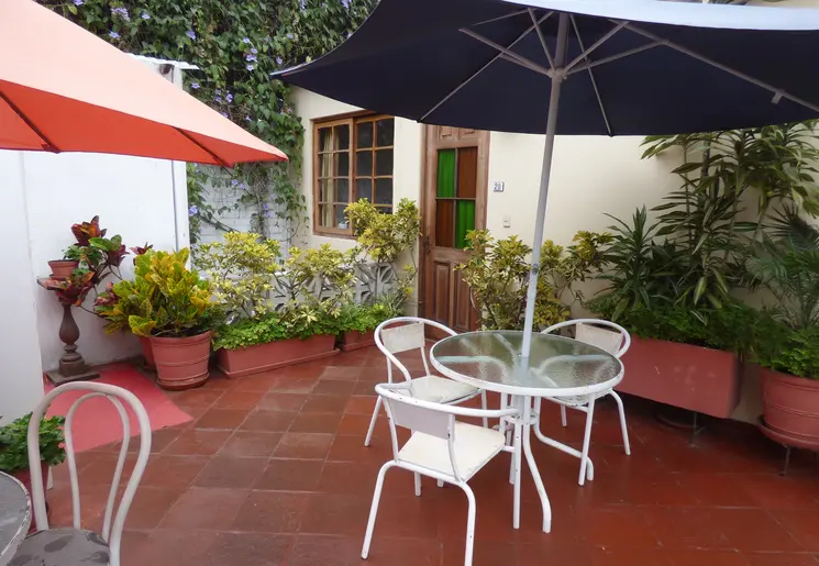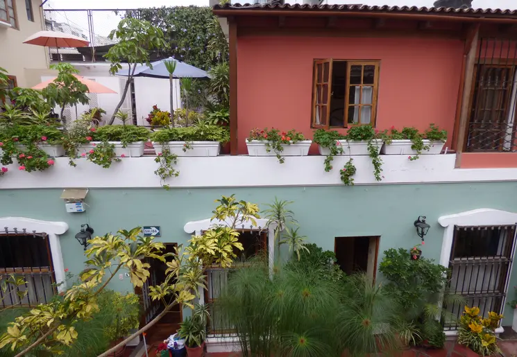 Knappe kamers rondom patio met bloemen in het hart van Miraflores.