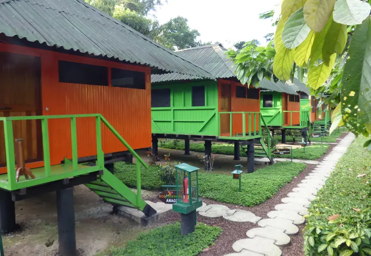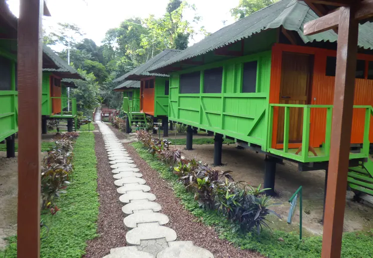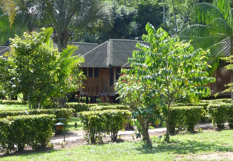 Je krijgt het echte junglegevoel in je bungalow, omdat er geen glas in de raamkozijnen zit, maar slechts muskietengaas.