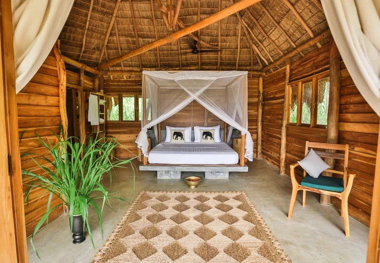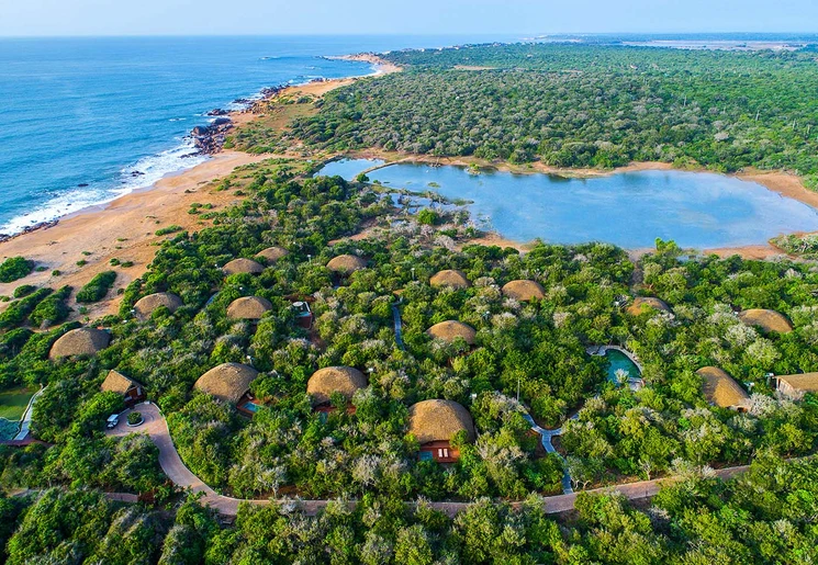Je verblijft in een luxe lodge aan de rand van het Yala National Park, verscholen tussen duinen, bos en de oceaan. De sfeer is exclusief en rustig. De hutten liggen verspreid in de natuur, met veel privacy en eigen zwembadje. Je verblijft op basis van All Inclusive, uitstapjes zoals een dagelijkse safari worden door de accommodatie verzorgd.