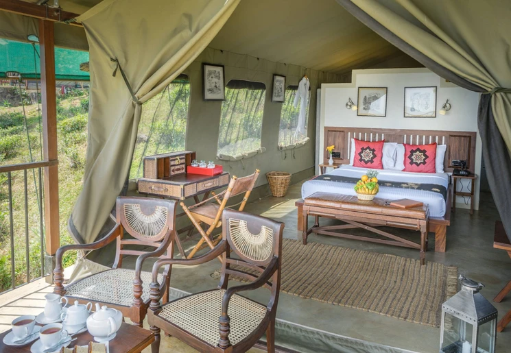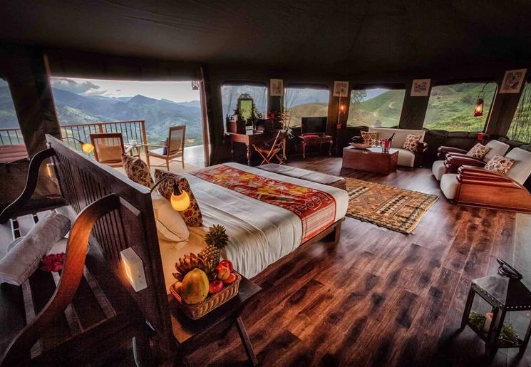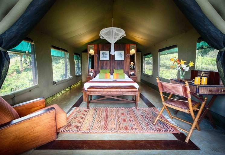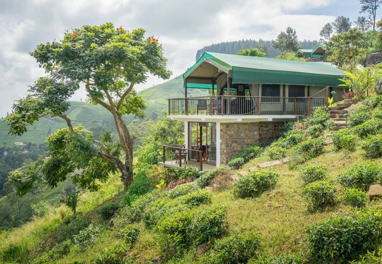 Je verblijft in een kleinschalige ecolodge midden tussen de theevelden van Sri Lanka. Vanuit de lodges kijk je uit op de bergen en theevelden. Je slaapt in een luxe safaritent met uitzicht op de bergen en de vallei. De stijl is eenvoudig en natuurlijk, met houten vloeren, canvas wanden en een open veranda.