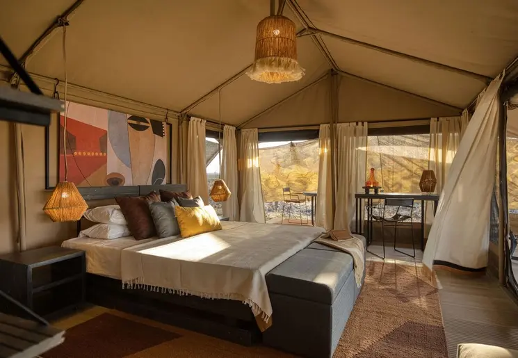 Op een verlaten plek midden in de natuur staan de eenvoudig koepeltenten voor je klaar. Heel bijzonder om hier te slapen, ver weg van de bewoonde wereld. Je kunt douchen en voor een matras, beddengoed en handdoeken wordt gezorgd. Het vriendelijke personeel bereidt smaakvolle maaltijden. ’s Avonds gaan de kerosine lampen aan als verlichting.