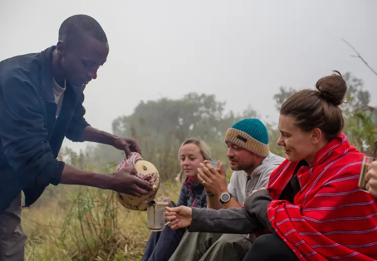 Dankzij de hoge ligging van het kamp word je wakker met een spectaculaire zonskomst, een mooi begin van de dag. Je wandelt naar het volgende kamp dat afgelegen ligt aan de rand van het Gregorian Rift. Masai-gidsen begeleiden je op deze tocht door schilderachtige Masai-dorpen en over glooiende heuvels. Ze delen hun verhalen met je, heel interessant. Laat tijdens de picknicklunch de natuurlijke schoonheid van de omgeving op je inwerken. Tegen de middag bereik je het kamp, tijd om te relaxen. In de namiddag loop je met de Masai naar een nabijgelegen uitkijkpunt. Met een drankje in de hand ben je getuige van een betoverende zonsondergang. Wanneer de lucht zich kleurt met warme tinten, luister jij alleen nog naar alle geluiden uit de natuur.