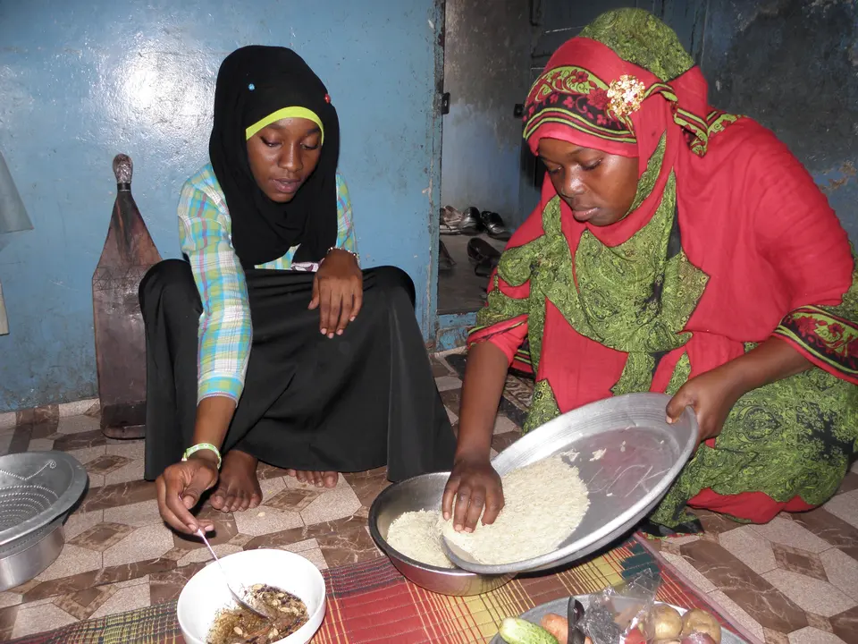 Je laat het gekrioel van de markt achter je en gaat naar je gastgezin. Hopelijk heb je trek gekregen, want jullie bereiden een 3-gangen menu. Zo begin je met supu ya pweza (inktvissoep) of urojo. Na deze traditionele starter mag je proeven van gerechten als pilau, biriani, kuku, samaki of pweza wa kupaka, aangevuld met banaan- of cassavegerechten. Hou nog een gaatje over voor het nagerecht. De delicatessen kaimati of visheti maken je maaltijd af.