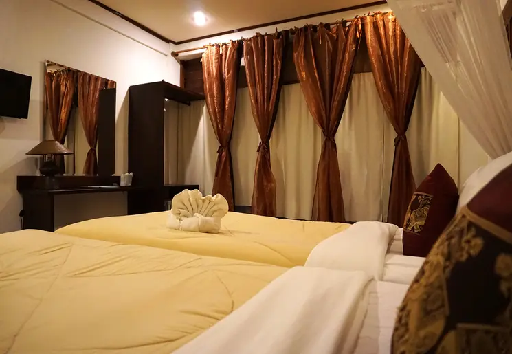 De kamers zijn met veel houtaccenten ingericht wat de authentieke Thaise sfeer weergeeft. Door de vriendelijke Thaise gastvrijheid voel je je hier al snel thuis.