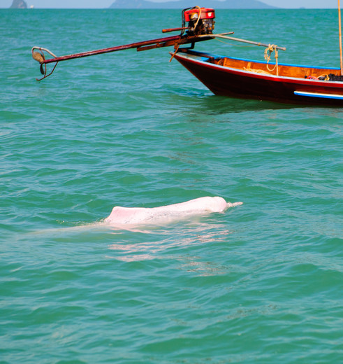 Houd je camera bij de hand en je ogen goed open: het is tijd om roze dolfijnen te spotten! De komende 2 uur vaar je in een open longtailboot langs de kustlijn van Khanom, over zee en langs mangrovebossen. Onderweg leg je aan bij het kleine eiland Koh Nui York. Hier zie je een groot beeld van Luang Por Tuad, een belangrijke boeddhistische monnik.
