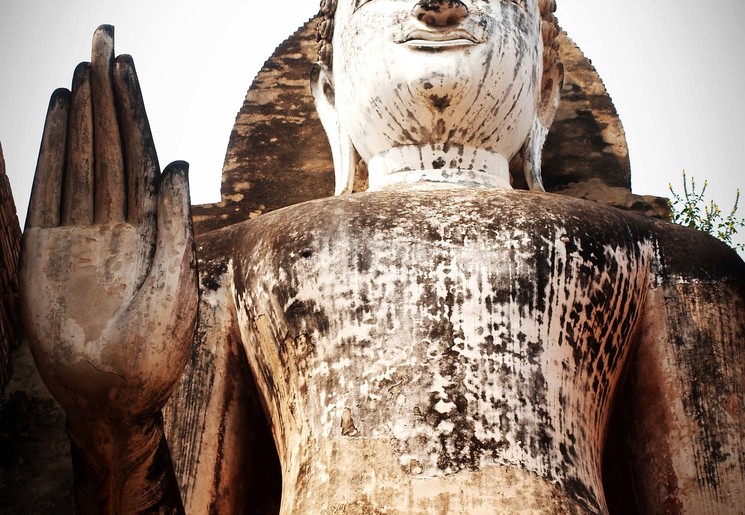 De ruïnes van Wat Phra Mahathat zijn vooral bekend om het stenen boeddhahoofd dat wordt omringd door de wortels van een bodhi-boom. Het geheel doet mysterieus aan, vooral omdat er wordt gezegd dat niemand weet hoe het hoofd daar ooit heeft kunnen komen. Het is uniek om te zien.