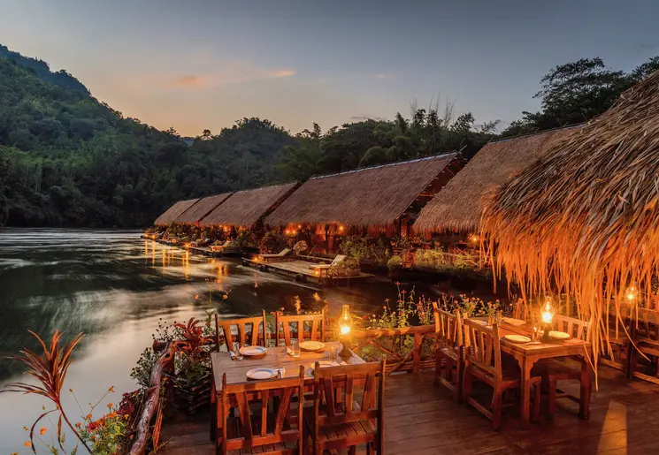 Als je de stad verlaat, rijd je de natuur in. Tussen de bergen en ondoordringbare jungle slingert de ‘River Kwai’. De nationale parken hier kenmerken zich door de vele watervallen en dichte jungle. Je kunt het gebied het beste vanuit een boot of kajak bewonderen. Makkelijk bereikbaar zijn de Erawan-watervallen. Maak een wandeling en neem een verfrissende duik in 1 van de 7 poelen. Verder stroomopwaarts ligt de Hellfire Pass, het zwaarste deel van de bouw van de Thai-Birmaspoorlijn. Op deze plek zijn veel gevangenen omgekomen en ter nagedachtenis aan de gruwelijkheden is er een museum gebouwd.