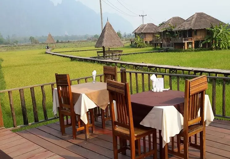 Je wordt per tuktuk bij het treinstation van Vang Vieng opgehaald en naar je hotel in Vang Vieng gebracht.