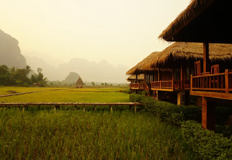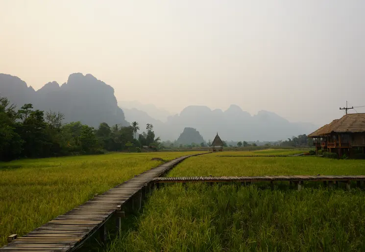 De natuur rond Vang Vieng is de voornaamste reden om dit plaatsje te bezoeken. De plek wordt doorsneden door de Nam Song rivier en omgeven door rijstvelden en hoog oprijzende karstbergen. Aan de rivier ligt een aaneenschakeling van ruim 30 dorpjes waar de Khamu en Lao, vaak nog op traditionele wijze, leven. Het centrale, meer toeristische deel, van Vang Vieng trekt veel backpackers. Hier zijn heel veel hostels, bars, restaurants en massagesalons te vinden. In de ochtend is er een markt waar de locals hun inkopen doen, en in de avond een meer toeristische nachtmarkt. Vang Vieng is ook bekend vanwege de outdooractiviteiten; kajakken, tuben, ziplines, paragliden, ballonvaren, enzovoorts. Tip: neem de tijd om van de zonsondergang boven de karstbergen te genieten.