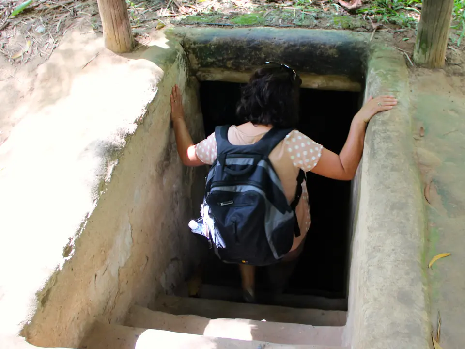 ’s Ochtends vroeg rijd je naar de bekende Cu-Chi tunnels. Tijdens de Vietnamoorlog dienden de Cu Chi-tunnels als schuilplaats voor de Vietcong. De tunnels zijn bij elkaar zo’n 250 kilometer lang. De ingangen waren niet te zien. Je gids schuift wat zand weg en er verschijnt een luikje waar de slanke Vietnamezen in verdwenen. Een deel van de tunnels is ruimer gemaakt, zodat de ‘grote’ westerse toeristen er ook in passen. Terug naar Ho Chi Minh City voor de lunch (niet inbegrepen). Daarna naar het oorlogsmuseum. Om de narigheid van de oorlog los te laten maak je nog een wandeltocht door het centrum van Ho Chi Minh City langs historische Frans-koloniale gebouwen. De dag eindigt in Chinatown.