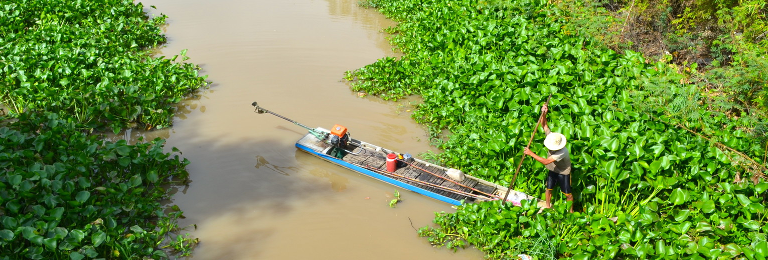 Onlangs ben ik voor Van Verre op reis geweest in een heel mooi deel van Indochina. In twee weken van Bangkok, dwars door Cambodja naar de mekong delta in Vietnam. Heel veel mooie tempels, rijstvelden, lieve mensen en uiteenlopende hotelletjes ervaren. Maar de meest bijzondere ervaring was mijn bezoek aan het haast magische nationaal park in Vietnam, het Cajuput woud op een uurtje rijden van Chau Doc. De dag begon al meteen goed met een heerlijk uitgebreid ontbijtbuffet op het terras van het strategisch gelegen Victoria Hotel. Het aroma van mijn versgemalen koffie verloor het al snel van de uitbundige activiteit op de Mekong rivier, dat zich pal voor mijn neus afspeelde. Bootjes van allerlei pluimage voeren langs; sampans, veerpontjes, vrachtboten en rijstschoeners, al dan niet met diesellucht en knetterende motor. Geen opsmuk, gewoon het alledaagse ontwaken van een bedrijvige rivierstad. Het meisje van de hotelreceptie bracht me uit mijn ontbijtroes om me erop te attenderen dat de lokale gids in de lobby op me wachtte. O ja, das waar ook, deze ochtend ga ik een excursie maken naar het Tra Su Cajuput Forest, een nationaal park in Vietnam.