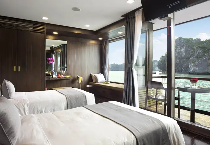 De Orchid Cruise vertrekt vanaf Dinh Vu; een andere locatie dan de meeste cruiseboten. Daardoor vaar je door een gebied waar weinig andere toeristenboten komen. De hutten aan boord van het luxe cruiseschip zijn comfortabel en ze hebben een eigen balkon. Al snel wordt de natuur prachtig! Je vaart door de Halong Bay; kalkstenen rotsen rijzen omhoog uit de zee. Je vaart langs diverse eilandjes. De lunch staat klaar. Halverwege de middag maak je een uitstapje naar Cat Ba National Park op Cat Ba eiland. Hier ga je naar de Trung Trang grot en het groene Kim Giao bos voor een wandeling. Voor de liefhebbers is er een kookdemonstratie aan boord en dan staat het diner alweer klaar. ’s Avonds kun je genieten van een film of proberen om inktvis te vangen samen met de bemanning of een massage boeken.