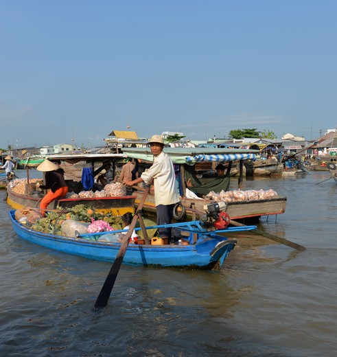 Per boot naar de kleurrijke drijvende markt van Cai Rang. Midden op de rivier liggen boten voor anker. Aan een bamboepaal hangt het product dat de handelsboot verkoopt. Je bootje zigzagt tussen de grote handelsboten door. Je vaart verder over smallere waterwegen. Bij één van de eilanden ga je aan wal om een stukje te wandelen en te zien hoe het dagelijkse leven in de Mekongdelta eraan toe gaat. Vervolgens word je naar Cai Son gereden. Per fiets trap je over smalle dorpspaden, langs kanaaltjes en door fruitboomgaarden. Het erf van meneer Ba Cong staat vol fruitbomen, je wordt hier uitgenodigd om een kopje thee te drinken. Per auto word je aan het einde van de ochtend teruggebracht naar Can Tho.