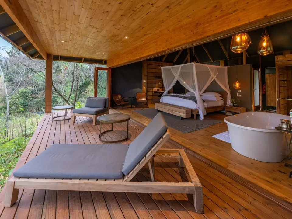 “Barefoot luxury”, dat is de slogan die je overal terugziet in reclame-uitingen van het Summerfield Rose Retreat. Luxe, maar zonder poespas, vooral je thuis voelen is belangrijk! Dineer ’s avonds onder de bomen aan de oever van de rivier in het bijbehorende restaurant. Dertien compleet ingerichte tenten met veel privacy, staan voor je klaar om de nacht door te brengen.